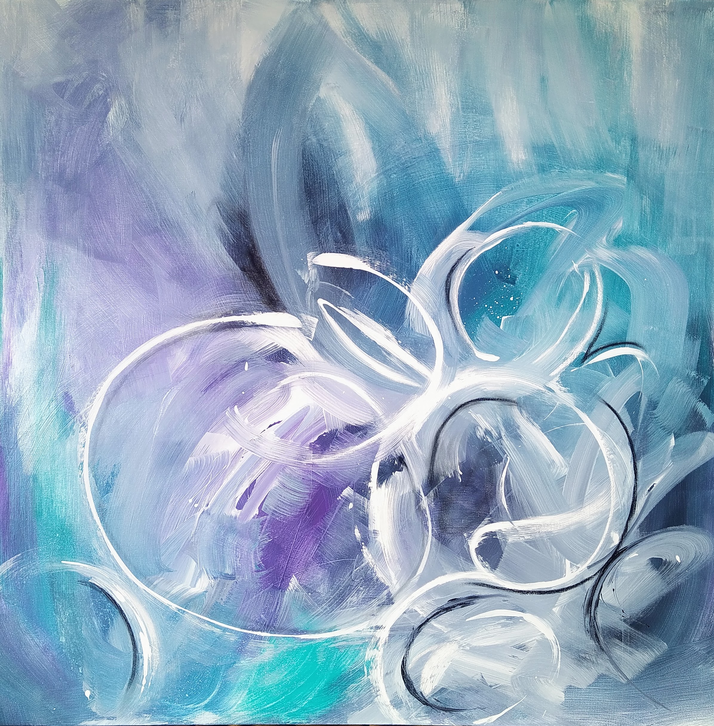 This modern artwork is painted in acrylics on cotton canvas with pastel and charcoal highlights and is ready to hang.